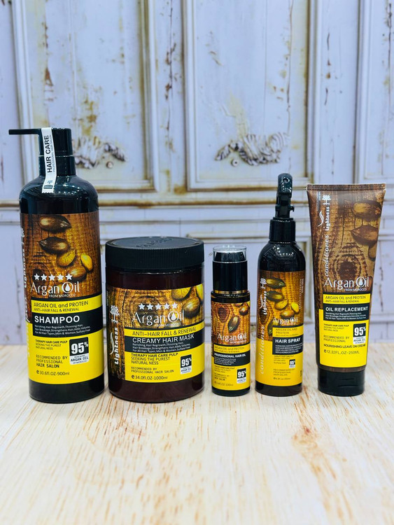 ست کامل محصولات آرگان لایتنس | شامپو، ماسک، روغن، کرم مو و اسپری دو فاز
