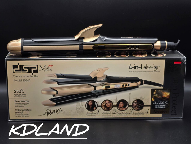 اتو مو چهارکاره DSP مدل 20861 موهایی صاف، فر یا موجدار داشته باشید؛ سریع، ایمن و حرفهای با دمای قابل تنظیم تا 230 درجه ✨