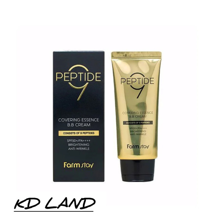 بیبی کرم پپتید ۹ فارم استی (FarmStay Peptide 9 Covering Essence BB Cream) یک کرم چندکاره آرایشی و مراقبتی است که با ترکیبات غنی از ۹ نوع پپتید فعال و مواد مرطوبکننده، همزمان نقش قاعده آرایش، مرطوبکننده، ضدچروک و ضدآفتاب را ایفا میکند. این محصول پوششدهی مناسبی برای عیوب، لک و ناهمواریهای پوست ایجاد میکند و در عین حال از پوست در برابر اشعههای مضر UVA و UVB با SPF50+ PA++++ محافظت میکند، درخششی طبیعی و یکدست به پوست میدهد و حسی سبک و راحت بر جای میگذارد.