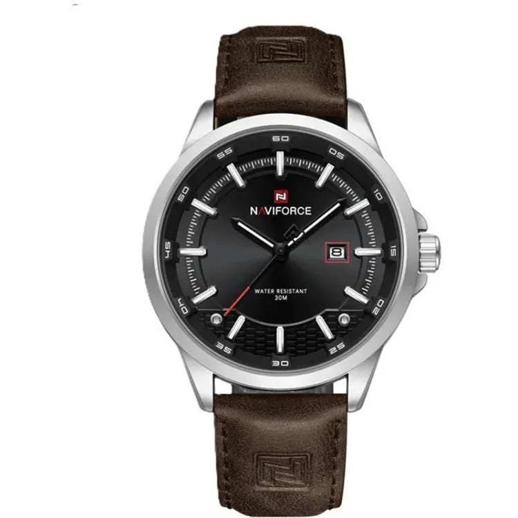 اگر به دنبال ساعتی هستید که استحکام و استایل اسپرت را در کنار ظاهر جذاب و مردانه ارائه دهد، مدل Naviforce NF9248 دقیقاً همان چیزی است که نیاز دارید. این ساعت با طراحی خاص خود، ترکیبی از چرم طبیعی قهوهای تیره و صفحه مشکی مات را به نمایش میگذارد؛ ترکیبی که حس قدرت، ماجراجویی و جذابیت کلاسیک را در یک قاب جمع کرده است.قاب این مدل از آلیاژ ضدزنگ ساخته شده و در برابر ضربه و خطوخش مقاوم است. بند چرمی ضخیم آن علاوه بر ظاهر خاص، راحتی بالایی در استفادهی طولانیمدت فراهم میکند. موتور کوارتز دقیق و نمایش تاریخ از ویژگیهایی هستند که عملکرد حرفهای NF9248 را کاملتر میسازند.مقاومت در برابر آب تا 3ATM، به شما اجازه میدهد بدون نگرانی از پاشش آب یا باران از ساعت خود استفاده کنید. طراحی اسپرت و قاب برجستهی آن، این مدل را به گزینهای ایدهآل برای استایلهای روزمره و ماجراجویانه تبدیل کرده است.ساعت Naviforce NF9248 نهتنها ابزاری برای نشان دادن زمان، بلکه نمادی از استقامت، سلیقه و اعتمادبهنفس مردانه است.