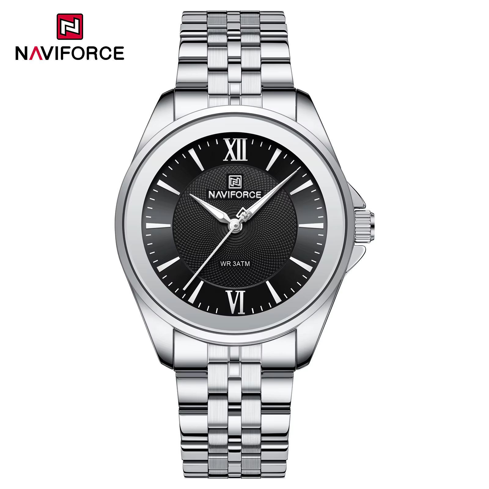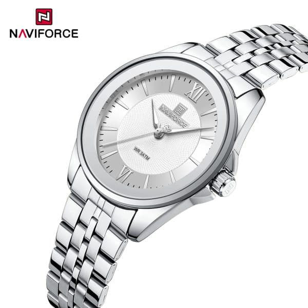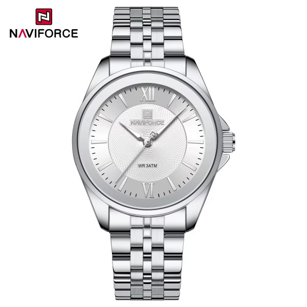 برند NAVIFORCE سالهاست در زمینه تولید ساعتهای خوشساخت، اقتصادی و مطابق با ترندهای جهانی فعالیت میکند و مدل NF5067 یکی از موفقترین طراحیهای زنانه این برند محسوب میشواولین چیزی که در ساعت مچی زنانه نیوی فورس NAVIFORCE NF5067 توجه را جلب میکند، طراحی بسیار شیک صفحه و بند استیل آن است. بر اساس تصویر ارائهشده، صفحه ساعت حالتی مینیمال، براق و بسیار ظریف دارد که با نشانگرهای ساده و کلاسیک، حس لوکس و رسمی را کاملاً منتقل میکند.
